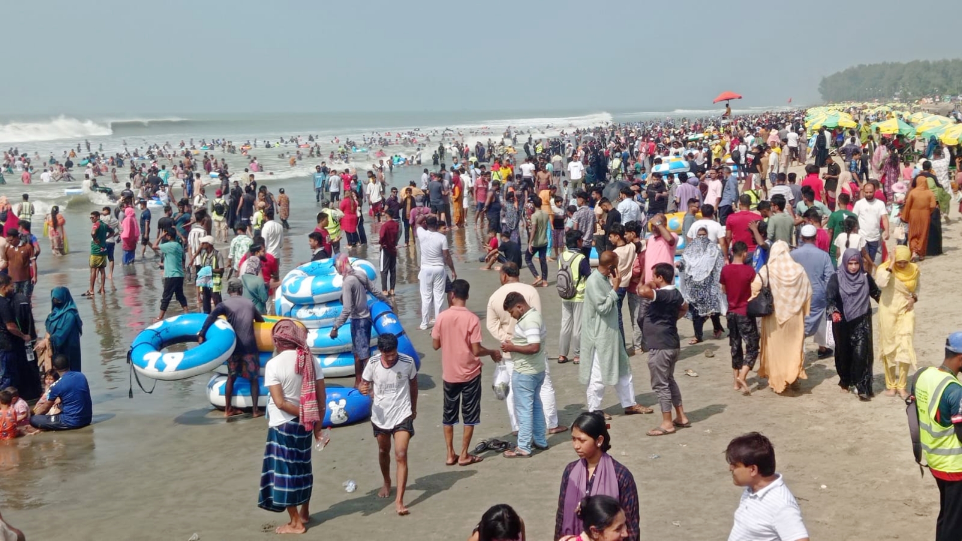 সকাল-সন্ধ্যা সৈকতের সুগন্ধা, লাবণী, কলাতলীসহ সৈকতের বিভিন্ন পয়েন্টে দেখা যায় পর্যটকের ঢল নেমেছে। নানান বয়সের দর্শনার্থীরা বালুচরে উৎসবের আমেজ আর ঢেউয়ের তালে সুন্দর মুহূর্ত উপভোগ করছেন।